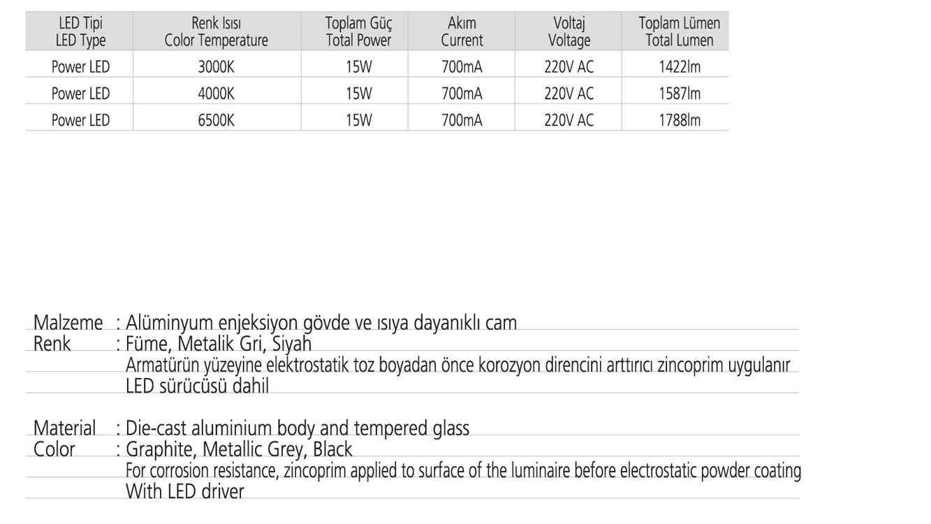 • Toplam Lümen 1422lm-1587lm-1788lm