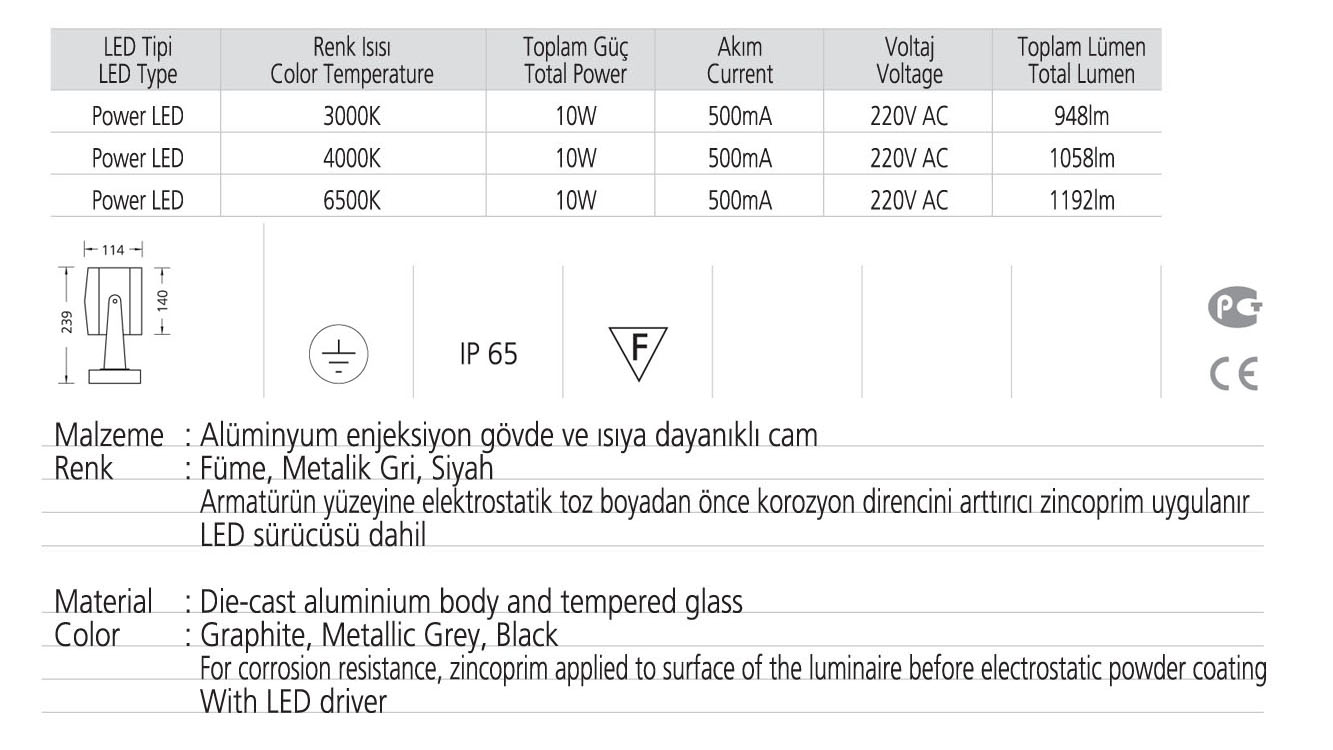 • Toplam Lümen 948lm-1058lm-1192lm