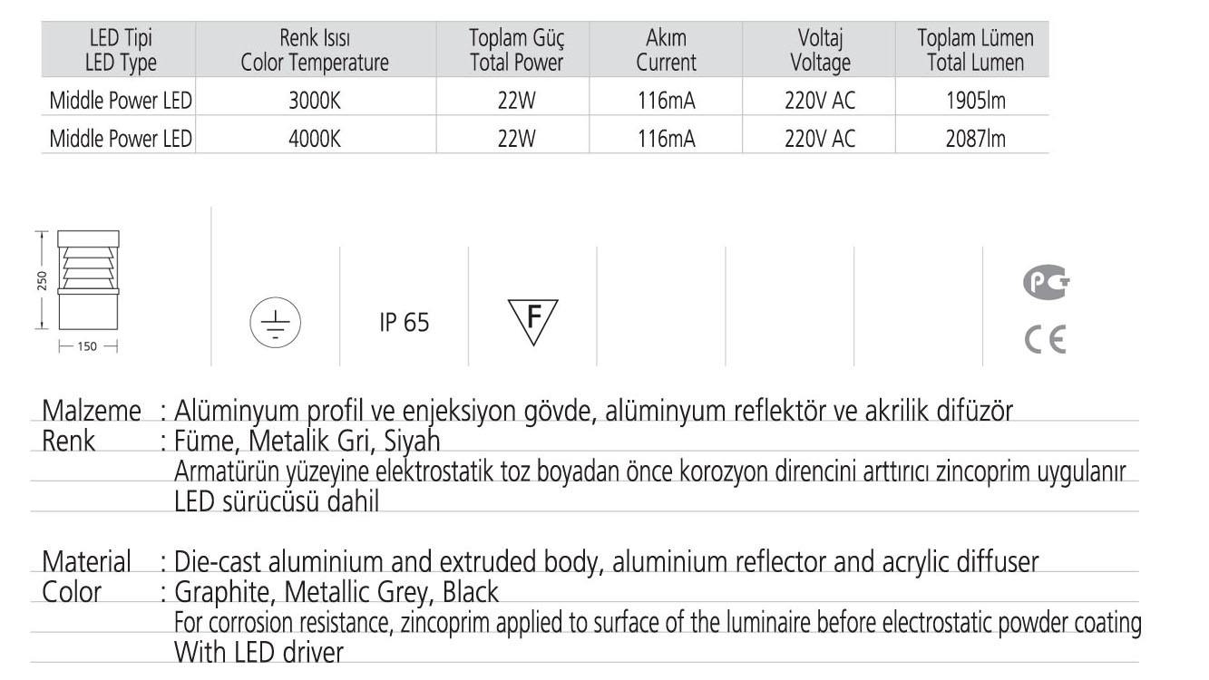 • Toplam Lümen 1905lm-2087lm
