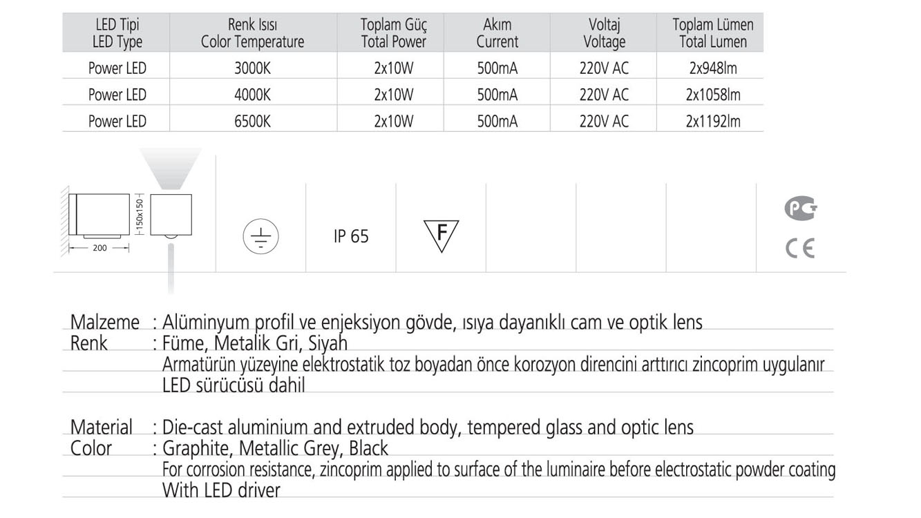 • Toplam Lümen 2x948lm-2x1058lm-2x1192lm