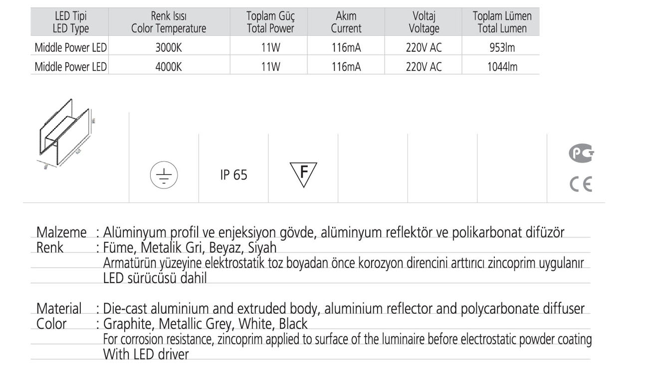 • Toplam Lümen 953lm-1044lm