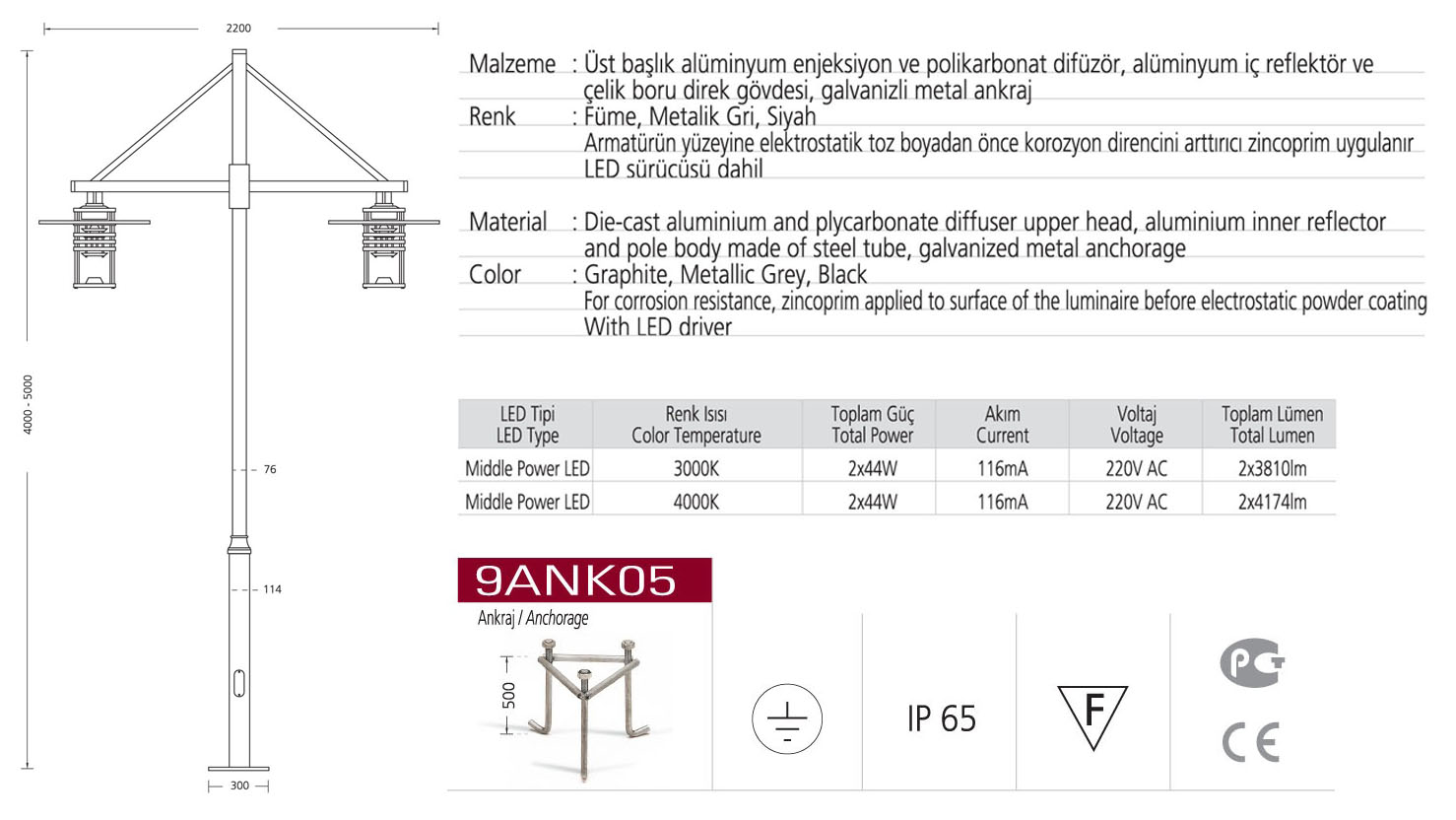 • Ölçüler 76x114x300x2200x4000-5000
