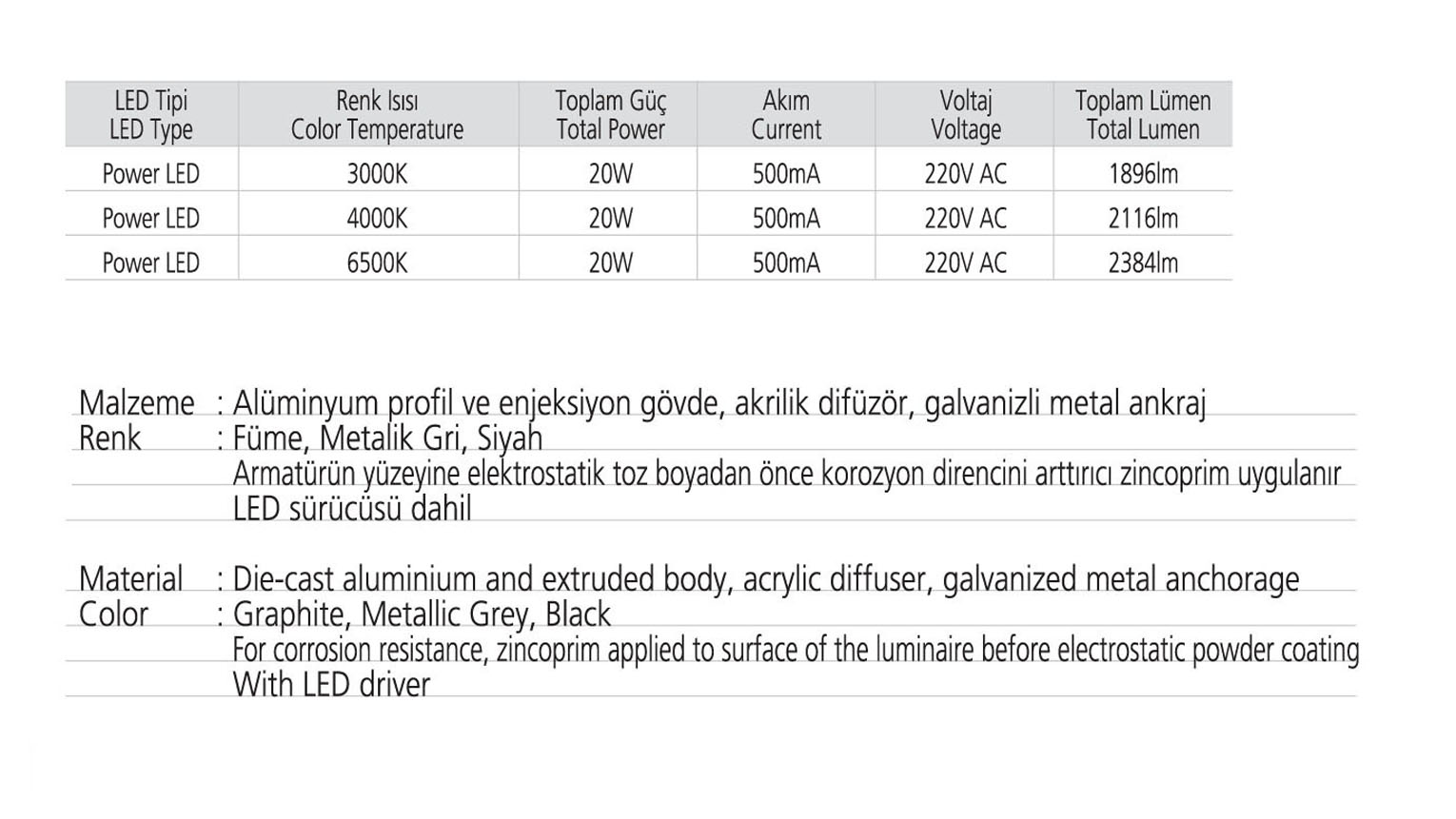 • Toplam Lümen 1896lm-2116lm-2384lm