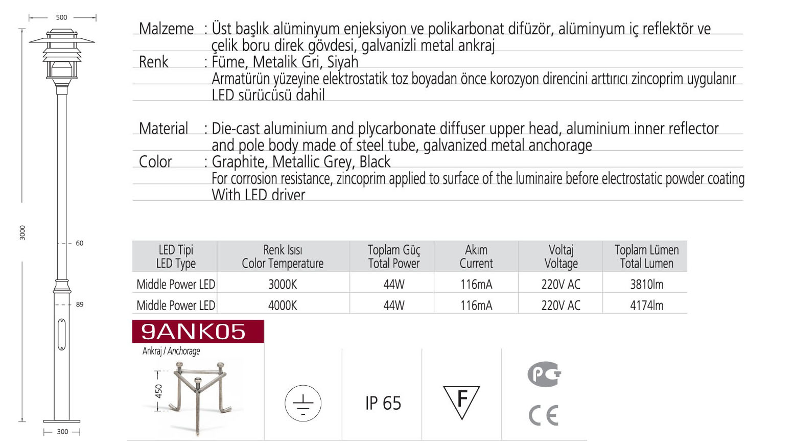 • Toplam Lümen 3810lm-4174lm